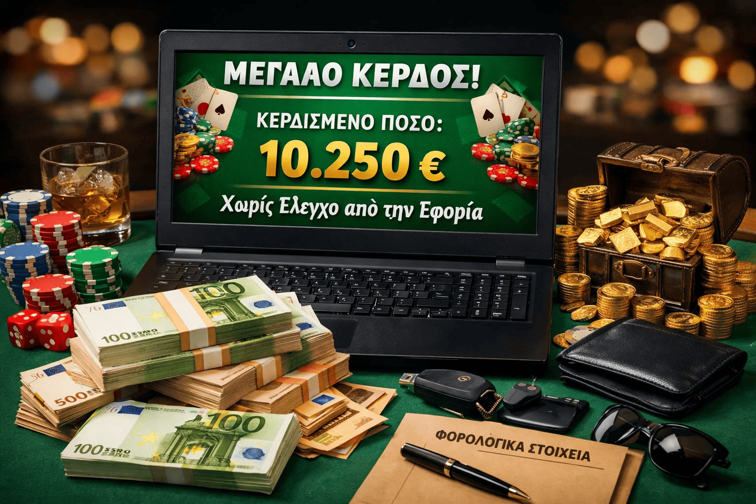Μόλις είδες την οθόνη να παγώνει. Το κουλοχέρης έφτυσε έναν πολλαπλασιαστή που δεν πίστευες ποτέ ότι θα δεις. 12.000 ευρώ. Η πρώτη σου κίνηση; Να βγάλεις screenshot. Η δεύτερη; Να σκεφτείς πώς θα τα βγάλεις. Στην Ελλάδα του 2026, το να κερδίσεις σε ονλινε kazino είναι μόνο η μισή μάχη. Η άλλη μισή είναι να καταφέρεις να κρατήσεις αυτά τα χρήματα μακριά από τα "νύχια" της ΑΑΔΕ και του TAXISnet.